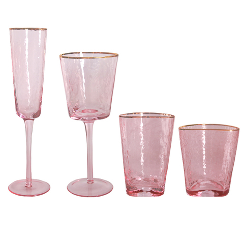 แก้วไวน์คริสตัลสีชมพูใช้ในบ้านแก้วไวน์แบบวินเทจสำหรับดื่มไวน์