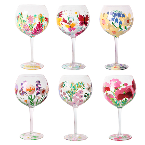 คอลเลกชั่นเป่าไวน์ทำมือ48ชิ้นพิมพ์ลายดอกไม้หลากสีทำด้วยมือปรับแต่งได้